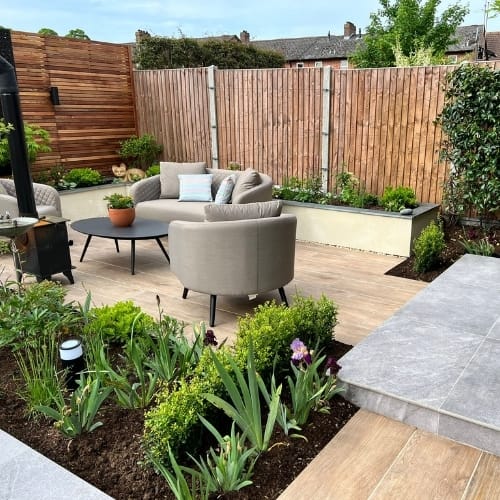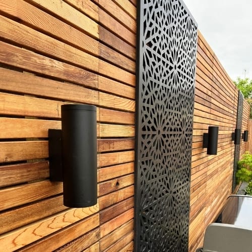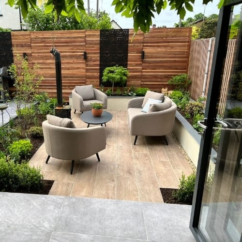 The fencing was chosen to bring warmth and contemporary character through its rich, natural colour that softens the hard landscaping. The slatted design provides privacy whilst keeping a premium finish.