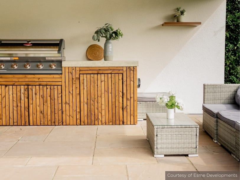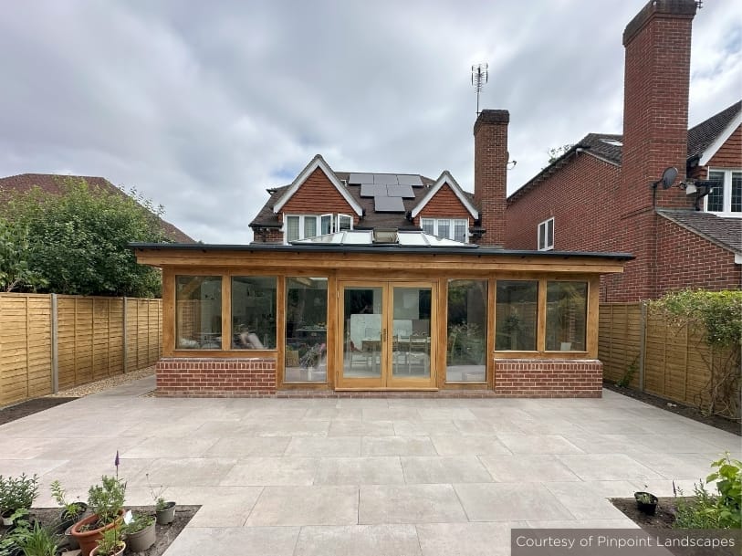 Porcelain paving has a cleaner, more contemporary appearance. It’s manufactured to be consistent in colour and size, which gives patios a sleek, modern look.