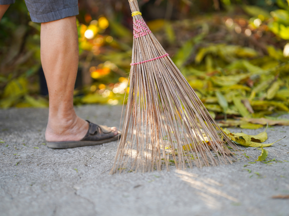Avoid using light coloured porous stones, especially under trees. Sweep patios regularly.