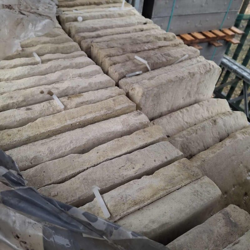 A pallet of 42 of 300 x 300mm Bradstone Old Town Weathered Limestone paving slabs to clear.