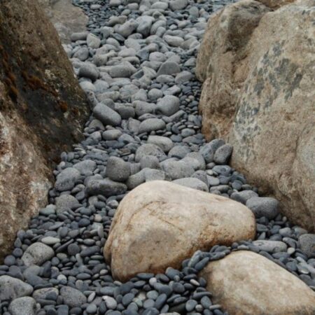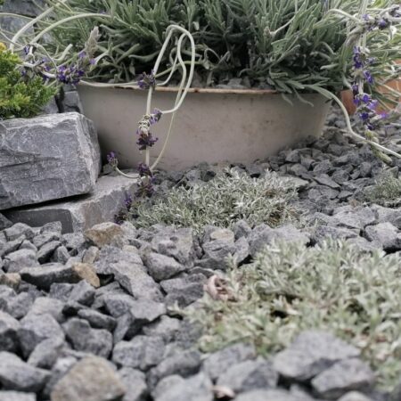 Black basalt chippings. Angular stones, these are a suitable aggregate to use as decorative chippings, for landscaping and aquatic use.