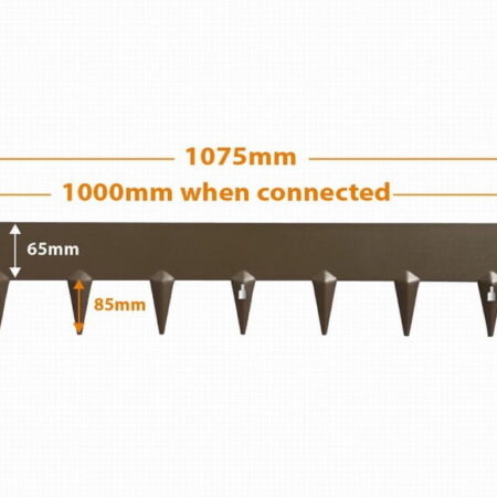 A simple connection system is used for a quick installation. Shape edging pieces into curves or right angles to suit the contours of your garden. Please note illustrations below are for 65mm face height edgings. The Anthracite 100mm face height edgings have 95mm spikes and are the same 1075mm length.