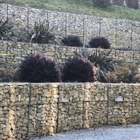 In domestic landscape settings, gabions are used for retaining walls and an array of decorative features. We stock welded mesh gabion baskets in a galfan coated finish and we can order other sizes in for you. The mesh size is 76.2 x 76.2mm size as standard, to allow filling material to be used of 100-200mm. 3mm wire is used on lower retaining walls (up to 3 metres). We stock 1m x 1m x 0.5m (3mm wire) baskets. The galfan finish is 95% Zinc, 5% Aluminium for up to four times the life of a galvanised finish.