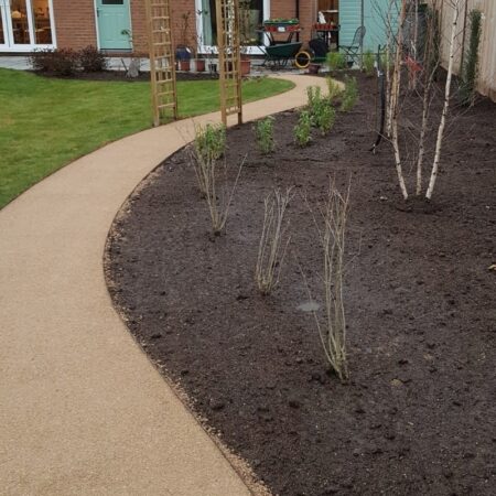 Goldpath Self Binding Gravel provides a sympathetic, attractive rich golden surface, which is easy to lay and maintain. Its natural setting properties bind the gravel together when rolled, to provide a self compacted firm finished surface, which remains firmer under foot than conventional loose aggregate. This also makes it ideal for projects where access and mobility for the user is a priority. Goldpath’s unique properties are suited to a wide spectrum of applications from domestic driveways and footpaths to commercial sector projects that require a cost effective durable surface and which is easy to lay and maintain. Goldpath is supplied in bulk bags (approx. 900kg or 0.6 cubic metre). Goldpath self-binding gravel is sometimes used as an alternative to hoggin, though it has less clay content.
