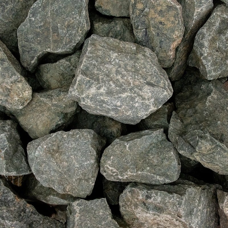 Green Granite Rockery is a hard, angular gritstone suitable for rockeries, water features, landscaping and as a gabion stone. Green with occasional white veining. Rocks are typically approx. 250mm