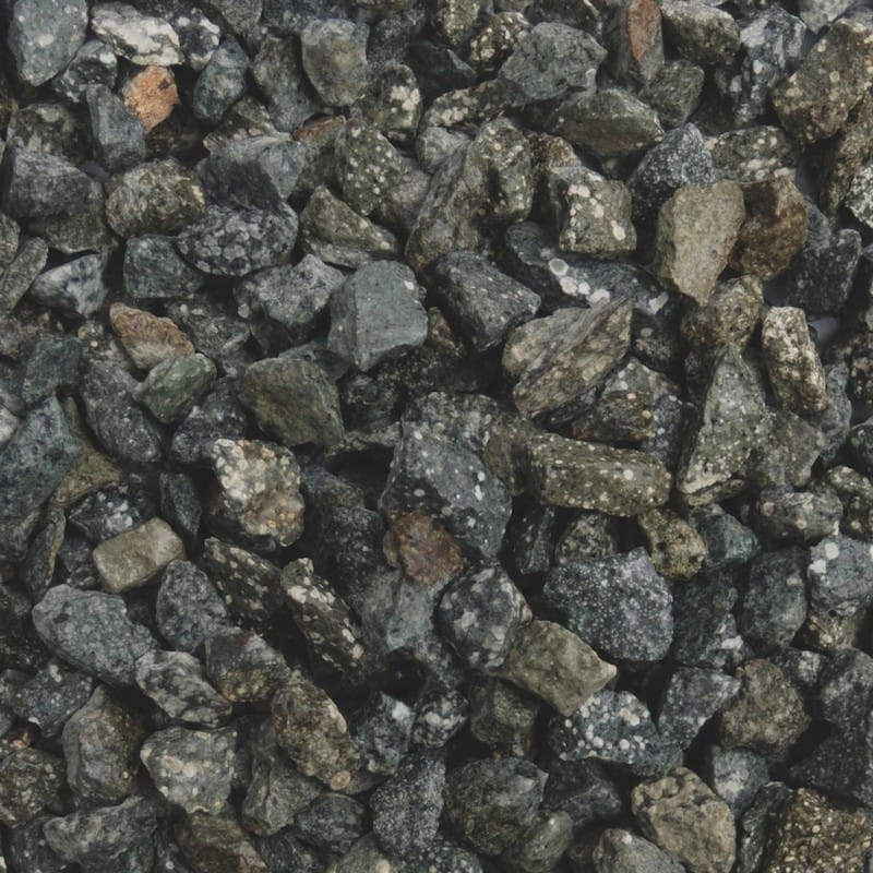 These angular green granite/basalt chippings are sized approx. 14mm. Green Granite chippings are a suitable aggregate for driveways, borders, features and plant pot toppers as well as ponds (re-wash before use).