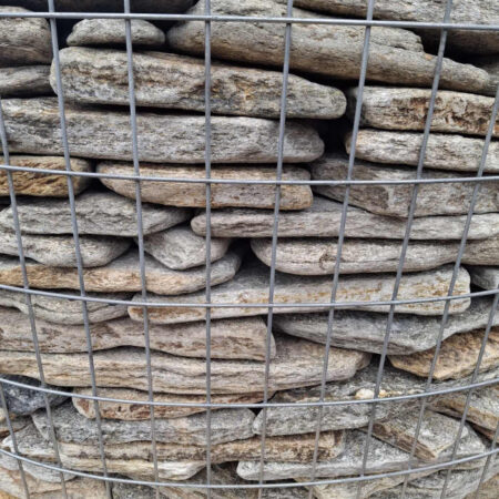 Supplied in 1300kg crates or by the kilo. The coverage for a 1300kg crate is typically approx 3 – 3.25 facing square metres when used as a drystone walling.