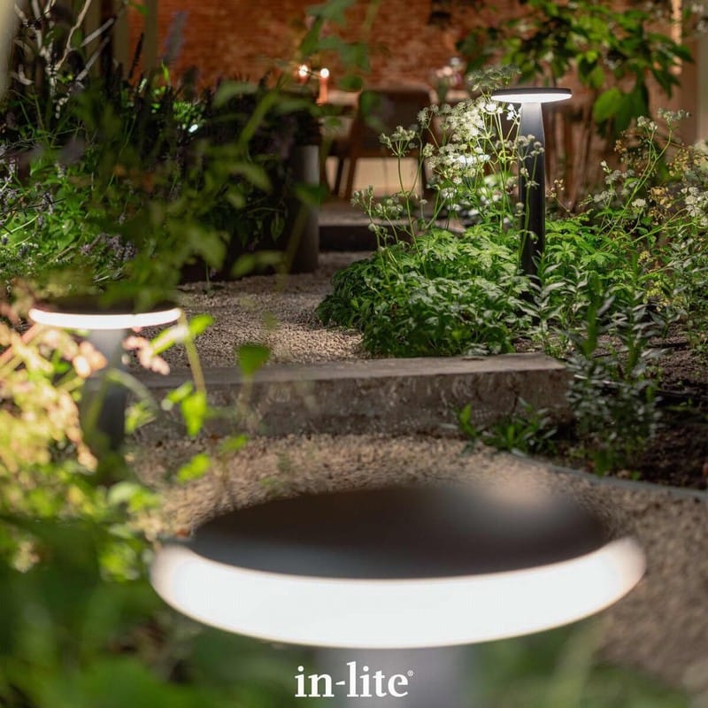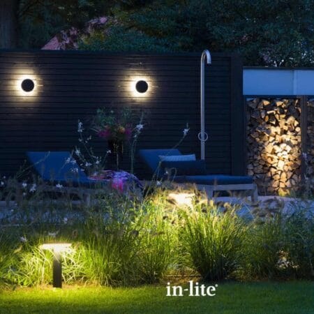 The In-Lite Disc Light Head to be used as a wall light or for a bollard. The low voltage in-lite® DISC lights shine a soft, warm ambient light in a 360° halo around the fittings, with the light source facing the either the ground or the wall to reduce glare and decrease outward light pollution.