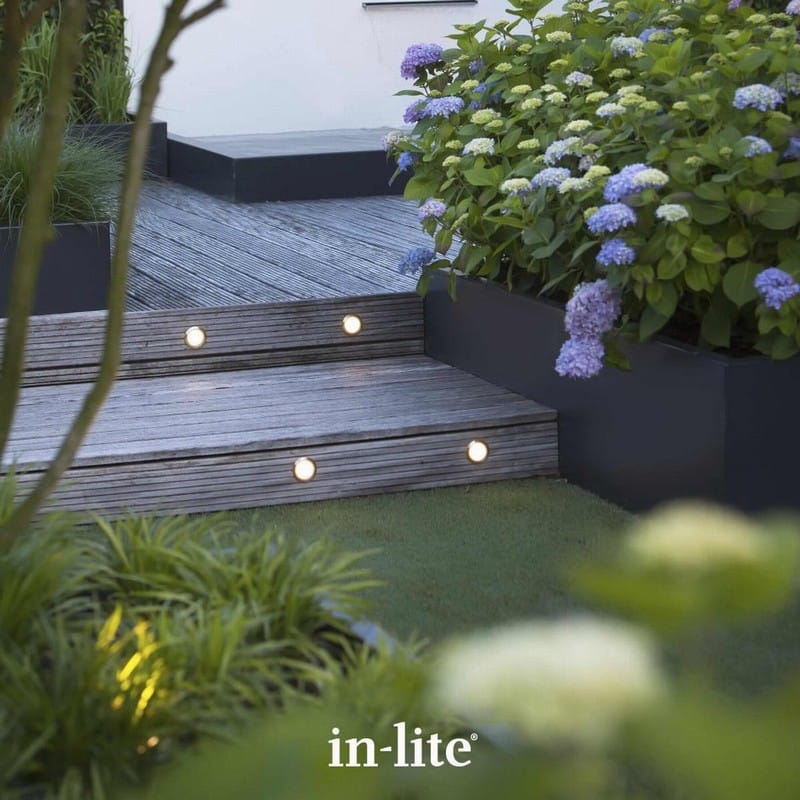 The in-lite® HYVE feature a 68mm Stainless Steel bezel and produce just 17 lumens of light. These fittings come alive at night as they feature a honeycomb style lens that produces an attractive, low-glare, warm light with a beam distance of around 1m. This makes them ideal for use as marker or accent lighting around areas with high traffic such as walkways, paths, decking, or even driveways. They are suitable for drive-over applications. in-lite® recommend spacing the HYVE fittings around every 1½ to 2m.