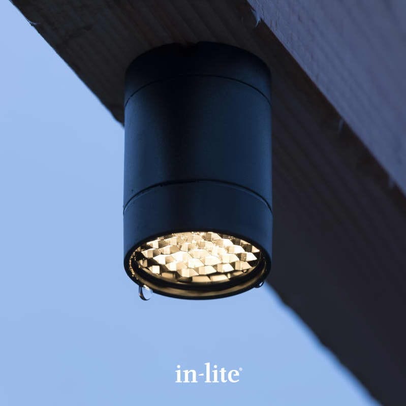 The in-lite® MINI SCOPE CEILING lights are designed for downlighting from pergolas, overhangs or ceilings. With a sleek Black finish, an IP67 rating and a durable polycarbonate construction, the MINI SCOPE CEILING is a great option for functional downlighting and accent lighting. Each light fixture comes with a KILLFLASH honeycomb lens that can be attached to the fitting if required. The KILLFLASH significantly reduces glare.