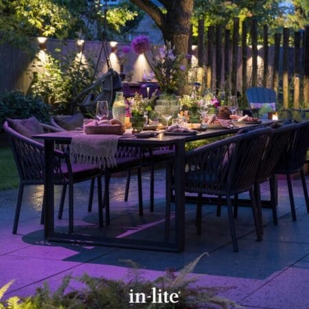The in-lite® SMART SCOPE TONE spotlights are constructed from high quality aluminium and can be easily hidden around the garden thanks to their dark colour. They feature a 32° beam angle that illuminates up to a distance of 5m. The colour changing light output makes them suitable for lighting not only trees, but also statues and feature walls. They are easily mounted into soft ground using the provided spike that comes pre-attached to the fitting. Alternatively, they can be used as a bracket light mounted to wood, bricks or stone by removing the spike and using the provided screws, wall plugs and cable grommet. Please see the Installation Guide PDF on this page for more instructions.