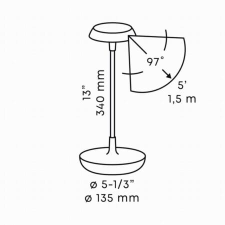 The SWAY TABLE features the in-lite® HUMAN DIMMING technology. This technology enables touch-control of the light fitting. By holding your hand above the head of the SWAY TABLE, it will turn on/off, while touching your hand lightly will cycle through the four stages of dimming. This method of control is intuitive and playful, and means there is no need for a secondary controller or key-fob.