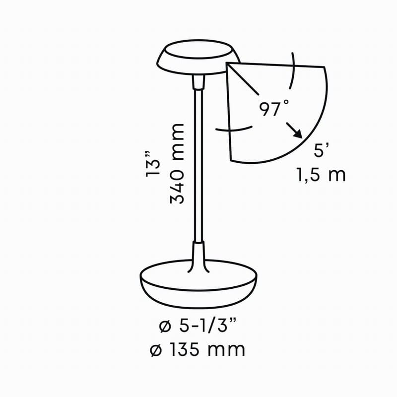 Once fully charged via the provided USB cable, the SWAY TABLE can last for up to 60 hours on a single charge. The SWAY TABLE also comes with a SWAY CAP that can be clipped onto the head of the fitting to change the visual aesthetic and push more light down onto the table.