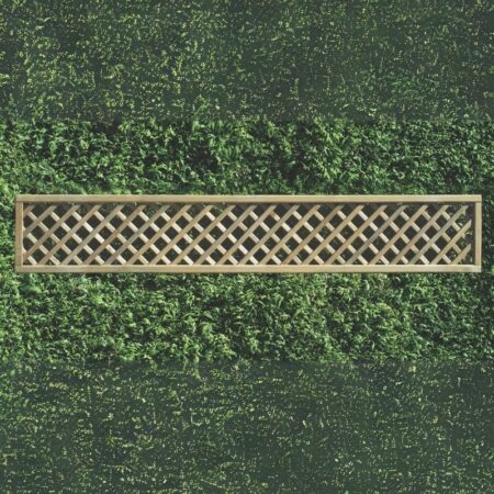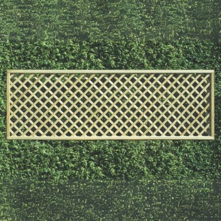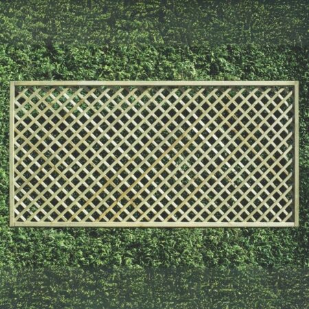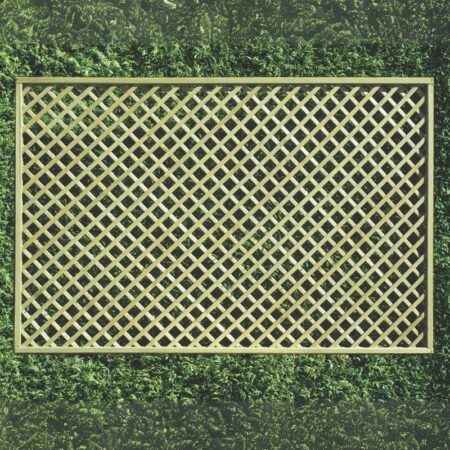 KDM Diamond Lattice Trellis is a quality pressure treated green framed lattice trellis. Planed all round with rounded corners. Lattice is 20mm wide and 8mm thick, with gaps of 40mm. Made from sustainably sourced timber.