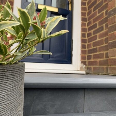 Brazilian slate steps have a neat bullnose edge and a smooth and gently riven surface. Brazilian black slate has a consistent and deep charcoal colour. Straight units have a bullnose front edge, whilst corner units are bullnosed along two adjacent edges.