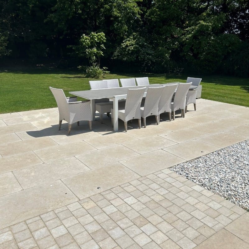 Kebur Contempo Egyptian Limestone Sinai Pearl paving has been honed and tumbled with sawn edges to create a sleek and smooth beige limestone paving. Egyptian Limestone Sinai Pearl is a gorgeous warm beige shade with natural glass and/or quartz veins and sometimes many fossils. Natural veining, occasional pitting, small chips on the edges and mottled colour variations enhance the natural beauty of this luxurious stone. This gives the stone immense character. Sinai Pearl is suitable for both traditional and contemporary gardens alike.