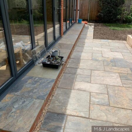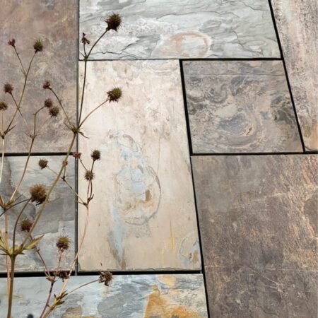 Contempo Copper Natural Slate Paving has a slight riven surface with sawn edges and each piece has its own natural texture and shade.