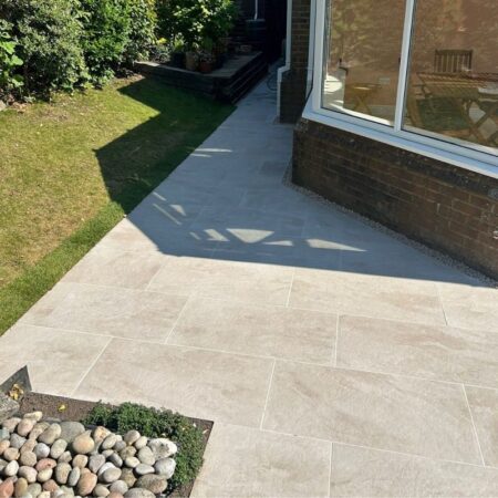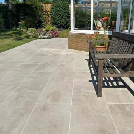Contempo Sandstorm Porcelain Paving is supplied in a 450 x 900 x 20mm size to provide that modern linear format. Sandstorm Porcelain Paving is a creamy buff high quality Italian porcelain. Its slightly riven surface and shadings replicate the look of sandstone.