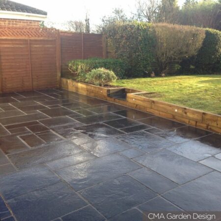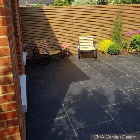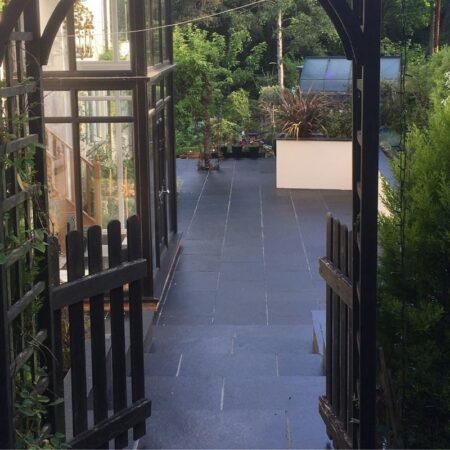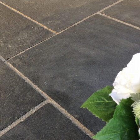 This Black Indian Limestone paving has a flat, lightly textured surface with handcut edges to give a stunning traditional finish, also suited to contemporary designs.