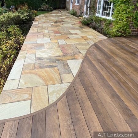 The warm, bright pastel tones and character of Fossil Mint Indian Sandstone make this a classic choice for traditional and contemporary garden designs.