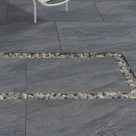 Kebur’s Pro Porcelain range offers all the benefits of porcelain paving at outstanding value. Pro Porcelain Stellar in Galaxy Anthracite is a dark stone look featuring striking veining, resistance to frost, stains and chemicals; a great low maintenance paving choice. Pro Porcelain range is suitable for a whole range of landscaping projects. Tiles are supplied in a popular 900 x 600 x 20mm size. This Indian manufactured porcelain is colour bodied and rectified to ensure uniform size and squareness. Tiles have a water absorption of 0.05%