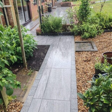 The sawn granite setts compliment the Kebur Contempo light grey granite paving.
