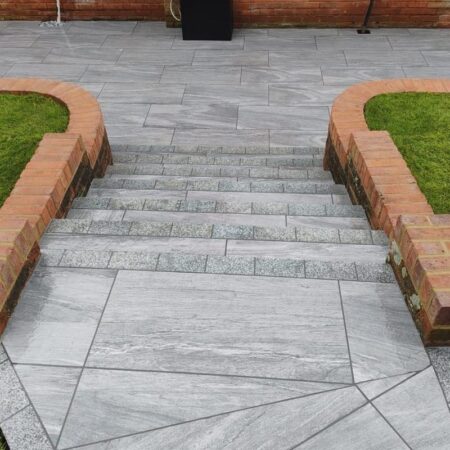 Light Grey sawn granite setts have a flamed (textured) surface. Granite is a hard-wearing material and these granite setts with sawn sides are great for contemporary designs. Use for driveways, paths, patios or as an edging.