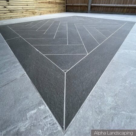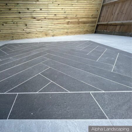 An attractive quartz stone looking porcelain in a black colour. Supplied in a 900 x 150 20mm size, these planks are suited for feature patios, borders, edgings and copings.