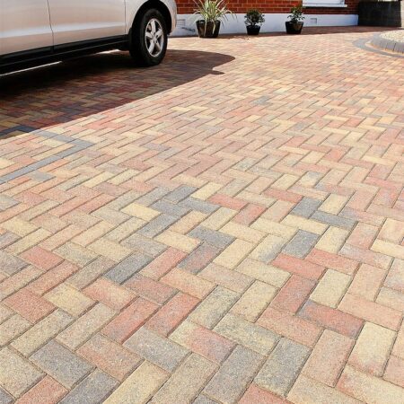 A high quality classic 200 x 100 x 50mm driveway block. Rustic colour is what other suppliers may refere to as autumn or autumn gold and is a mottled blend of red, buff and charcoal colours.