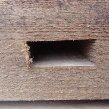 Morticed Timber Posts are used in conjuction with arris rails in the feather edge fencing system.