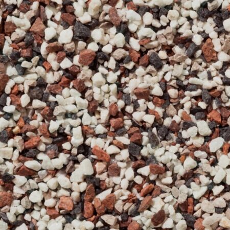Multimix Spar gravel is a mixture of red, black and white stones sized 8-11mm. This aggregate is suitable for borders, features and plant pot toppers.