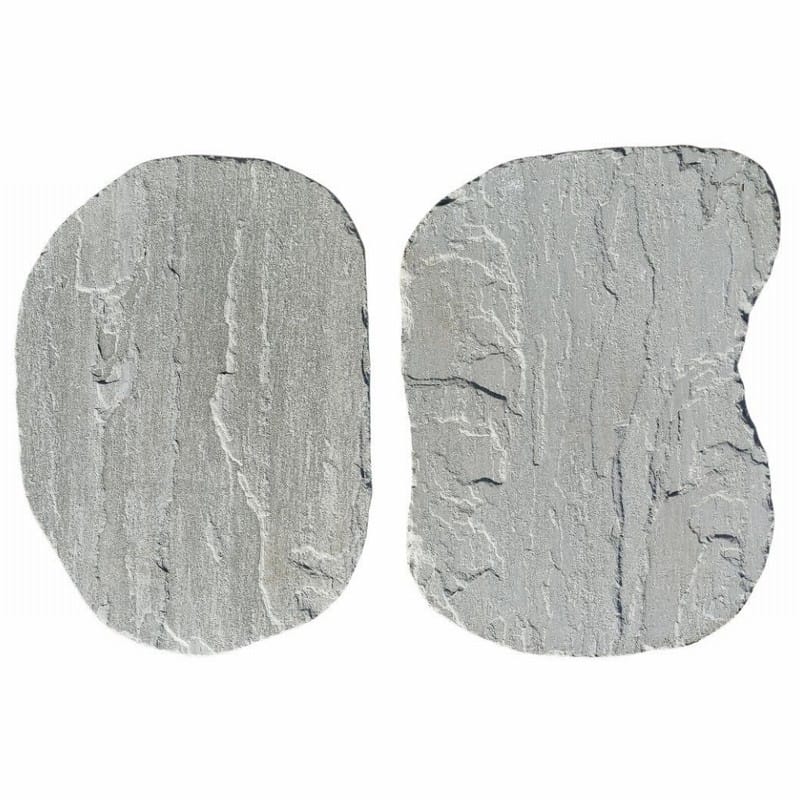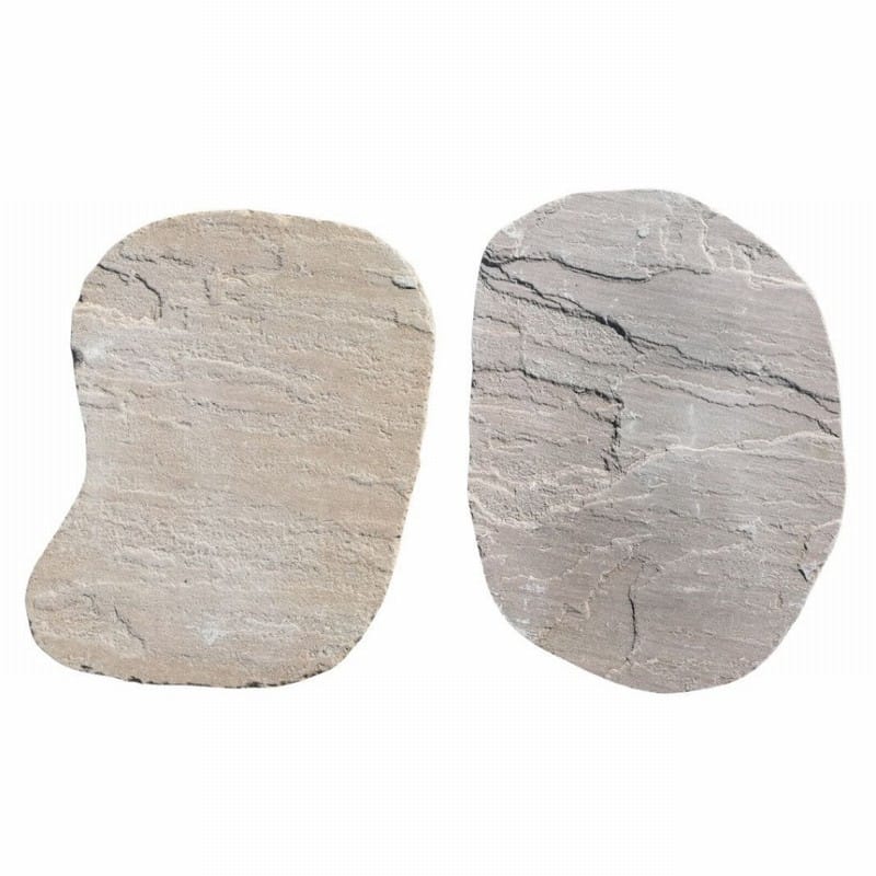 Natural Sandstone Random Stepping Stones come in various shapes and have been tumbled for a more worn look. Available in either a Raj Green or a Silver Grey colour. 560 x 420 x 25-35mm (approx.) A tumbled natural split surface, handcut edges with natural shading variations. Use alongside a Raj Green Natural Sandstone Trade Pack or Silver Grey Sandstone Trade Pack.