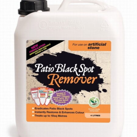 Patio Black Spot Remover is currently the only product developed specifically to remove those hideous ‘black spots’ and restore the natural colour to your garden stonework. This product will remove ‘black spots’ from Indian Sandstone, York Stone, Limestone (including Bath and Portland Stone), Purbeck stone and all other types of natural paving. Patio Black Spot Remover will remove all types of organic growth including green algae and white fungi growth. It gently cleans the stone whilst reviving and enhancing the natural colours, giving that ‘just laid’ look to your terrace, paths and patios.