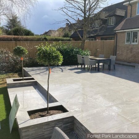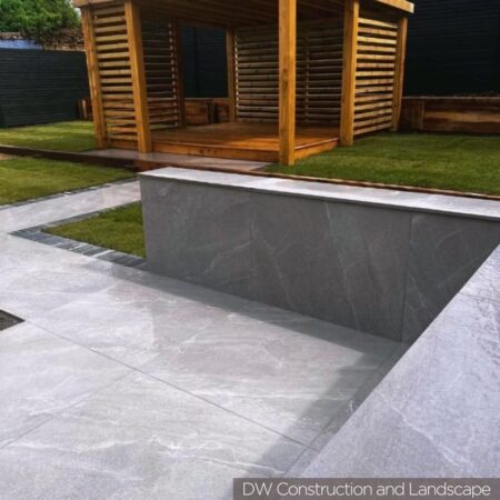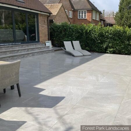 Contempo Volcano Etna Porcelain Paving is supplied in 900 x 900 x 20mm size. Volcano Etna Porcelain paving is grey in colour and a high quality Italian stone effect porcelain. Its large format size creates a truly stunning look. Subtle veining in the design means this tile oozes elegance. Volcano 900 x 900 x 20mm tiles are large and heavy. Therefore we recommend they are lifted by two people and using suction pads.