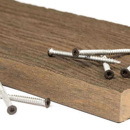 The discrete colour matching screws are supplied in boxes of 250 (for 6.5 sqm including countersinking tool).