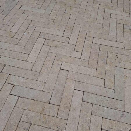 These Egyptian Limestone Sinai Pearl slim setts or stackers have been tumbled and then acid etched to create a lightly textured surface and slightly enhanced colour.