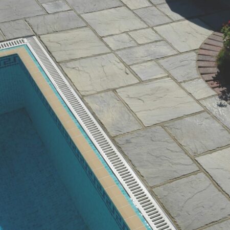 Paving is 38mm thick and supplied in 600×600, 600×300, 300×300 and 450x450mm or a 9m2 patio pack that contains 16 no. 600×600, 14 no. 600×300 and 8 no. 300×300. This paving can also be supplied in 600x450mm and 300x450mm, but please contact us should you wish to order these sizes.