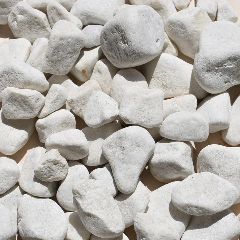 White Pebbles are rounded white dolomite pebbles sized between 20 and 40mm. A suitable aggregate for landscaping and water features.