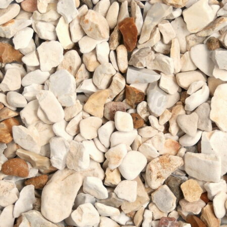 Yorkshire Cream is a smooth but angular flint shingle aggregate in soft greys and creams, combined with occasional sandy/brown flecks in a beautifully light mix that looks great in both traditional and modern settings. It is approx. 20mm and contrasts with plants, defining drives, paths and pots.