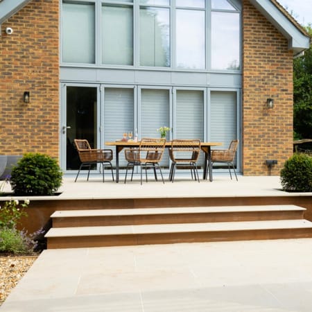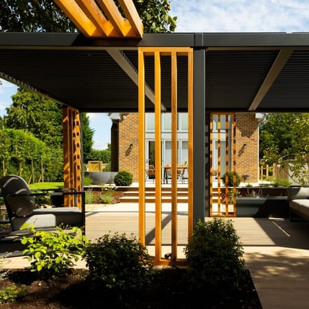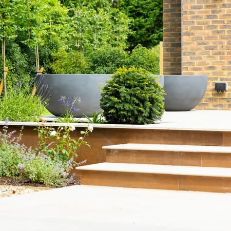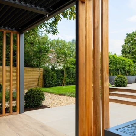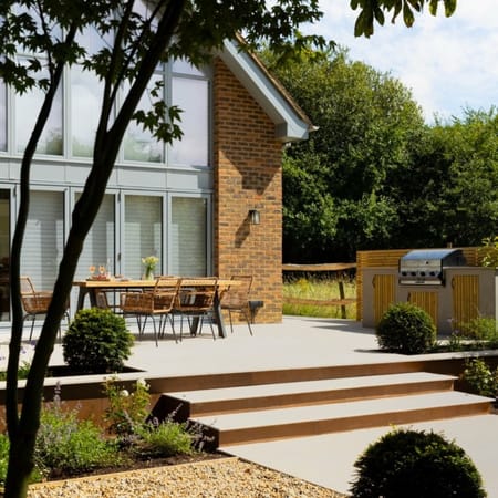When this family approached Winslade Landscapes and Raine Garden Design, their vision was clear: a modern, low-maintenance outdoor space that seamlessly extended their indoor living area. The design needed to balance style, practicality, and family-friendly features- all without using red bricks.